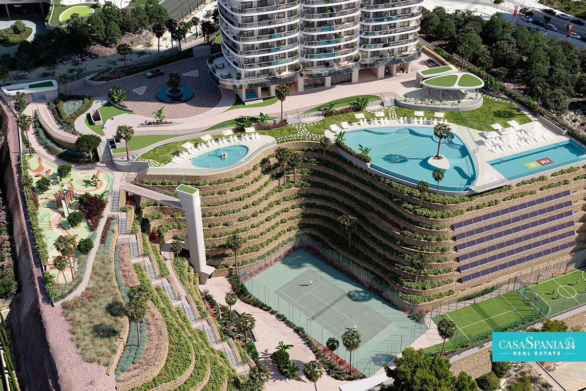 Met een hoogte van 230,50 meter en 64 verdiepingen is de TM Tower de hoogste woontoren van Europa en een nieuw icoon van de skyline van Benidorm. Het silhouet loopt geleidelijk taps toe naar boven, waarbij kleinere volumes worden gegroepeerd naarmate het hogerop komt, waardoor een verfijnde en lichte architectonische vorm ontstaat. Geïnspireerd door de organische vormen van de zee, roept de gebogen compositie van de volumes koralen op die opduiken en vloeiend met elkaar verweven zijn, wat resulteert in een slanke, elegante en dynamische structuur. Dit unieke ontwerp geeft het gebouw niet alleen een onmiskenbare persoonlijkheid, maar zorgt er ook voor dat elke woning geniet van een bevoorrecht uitzicht en een directe visuele verbinding met de zee.