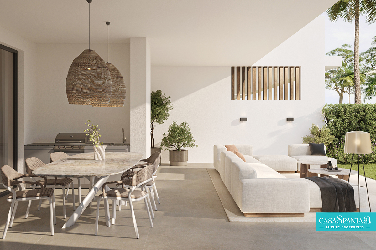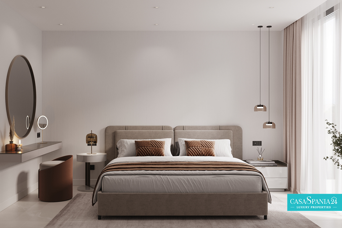 Veiligheid en comfort staan voorop in een volledig omheind complex, voorzien van automatische poorten voor auto- en voetgangerstoegang. De tuinen zijn aangelegd met gewapende betonnen paden met een steenachtige afwerking, getimede ledverlichting en een slim irrigatiesysteem, wat zorgt voor een elegante en duurzame ambiance. Het zwembad en de terrassen zijn afgewerkt met grote, antislip porseleinen tegels, die zowel een moderne uitstraling als maximale veiligheid bieden.