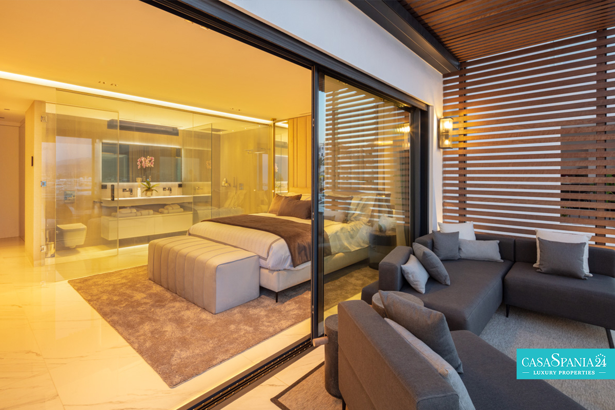 De woning beschikt over 3 weelderige slaapkamers, elk met een eigen badkamer, die privacy en comfort op het hoogste niveau bieden. Elk detail weerspiegelt verfijning en onberispelijke aandacht voor kwaliteit, waardoor dit huis een waar luxe toevluchtsoord aan het strand is. Het is de ideale keuze voor wie wil genieten van het beste dat Marbella te bieden heeft, met exclusieve restaurants, designerwinkels en top recreatiemogelijkheden binnen handbereik.
