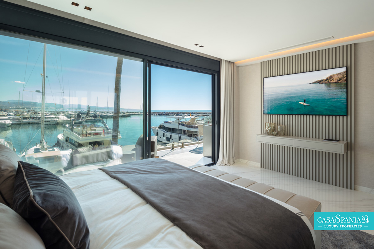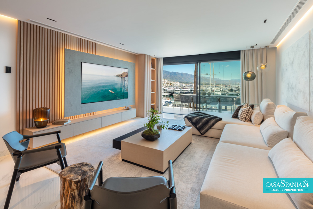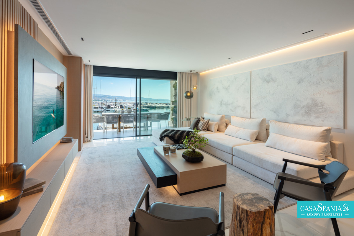 Een stijlvol, modern appartement in het hart van de beroemde jachthaven van Puerto Banus, dat indruk maakt met zijn spectaculaire panoramische uitzichten over de Middellandse Zee en de haven.