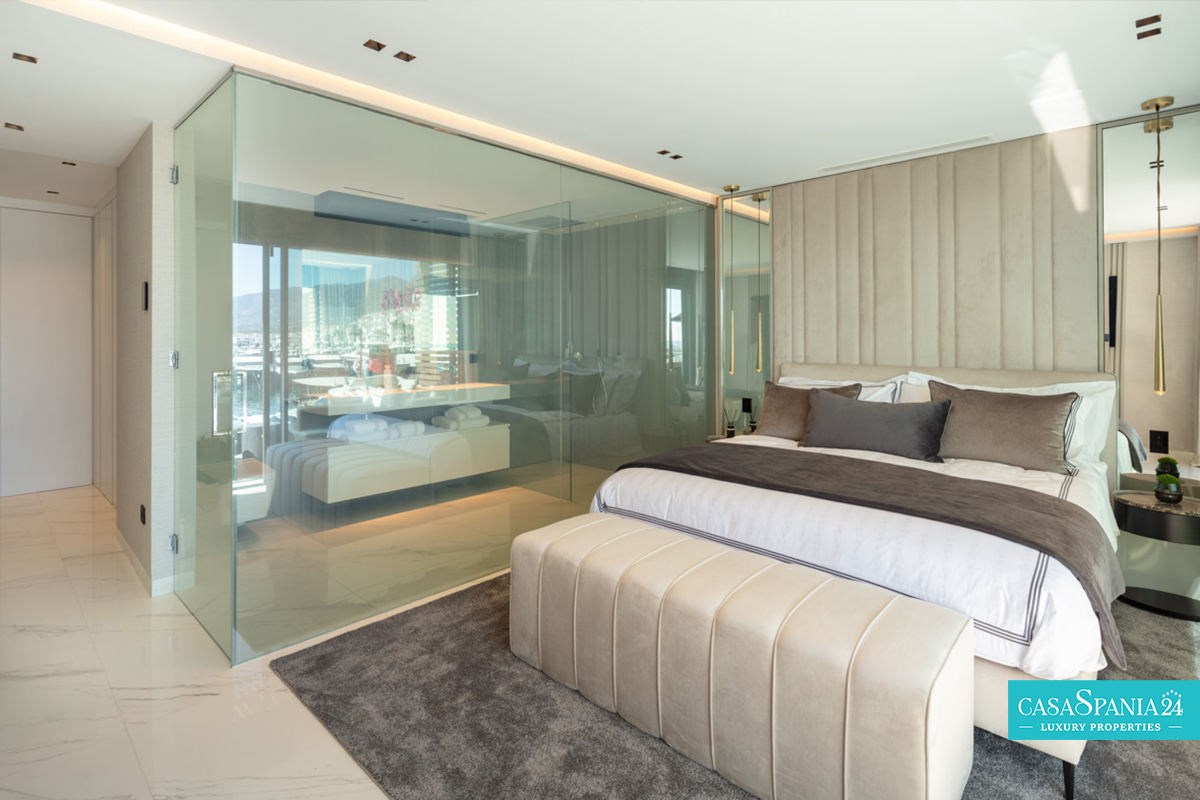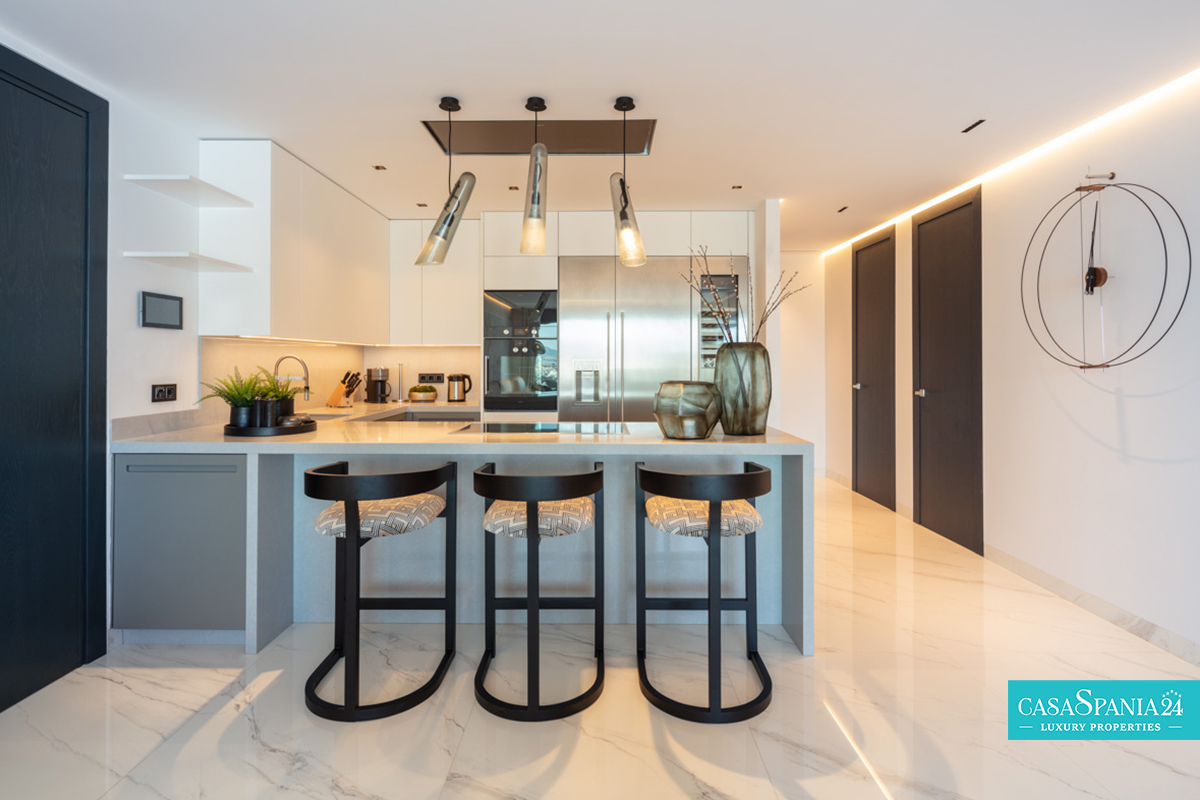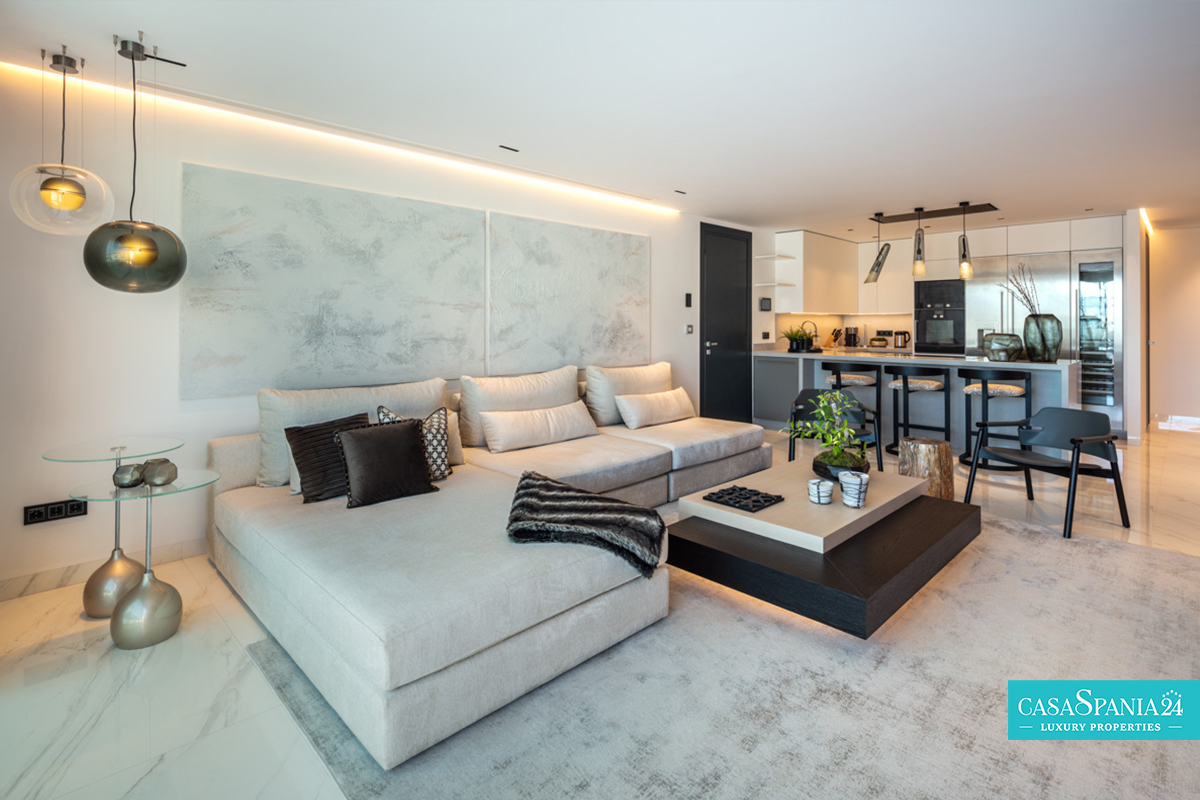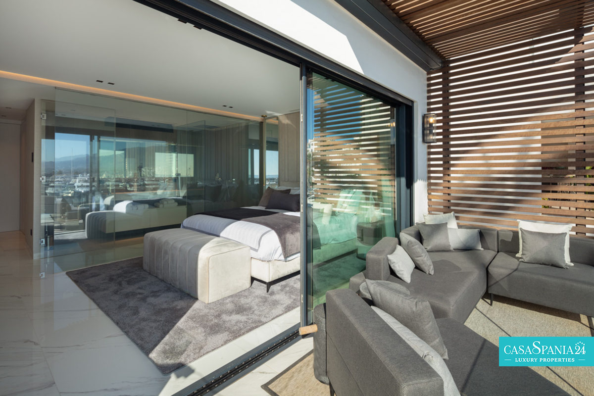 Een stijlvol, modern appartement in het hart van de beroemde jachthaven van Puerto Banus, dat indruk maakt met zijn spectaculaire panoramische uitzichten over de Middellandse Zee en de haven.