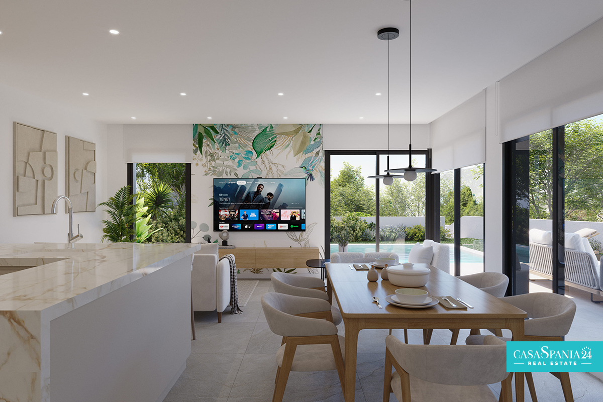 Perfect om gasten te ontvangen en te genieten van bewegingsvrijheid. Deze eigentijdse woonstijl zorgt voor een harmonieuze overgang tussen binnen- en buitenruimtes. Of u nu in de woonkamer, keuken of slaapkamers bent, natuurlijk licht is een essentieel element dat elk moment van de dag verbetert en de elegantie van uw nieuwe woning benadrukt.